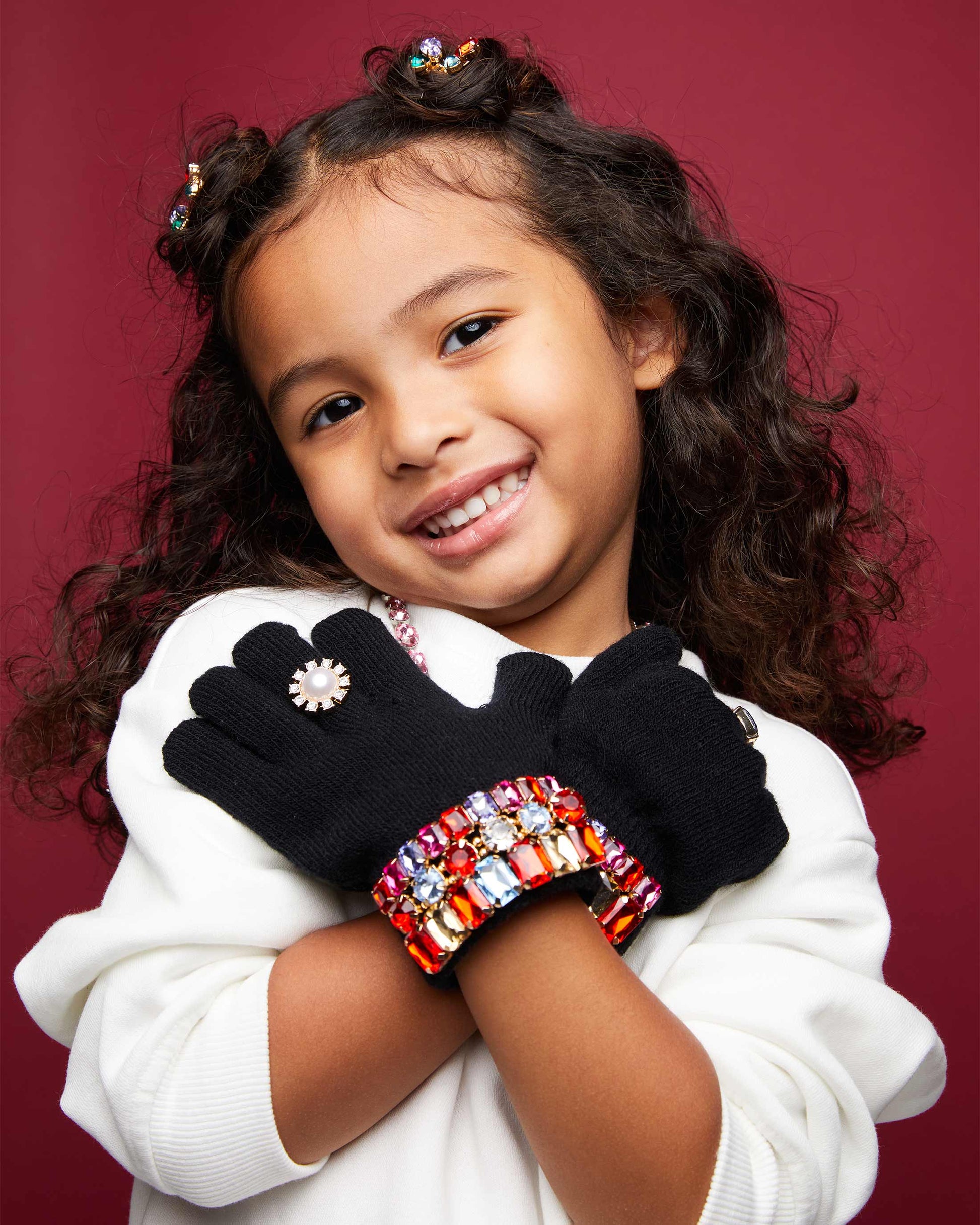 Brrr, time to keep those precious little hands covered! The coziest member of the Super Smalls crew is perfect for everything from ice skating outings, to walks to school, and sipping hot cocoa with pals. Embellished with colorful gemstones, now you can keep your fingers warm and your jewelry popping! Welcome to a winter sparkle-land.