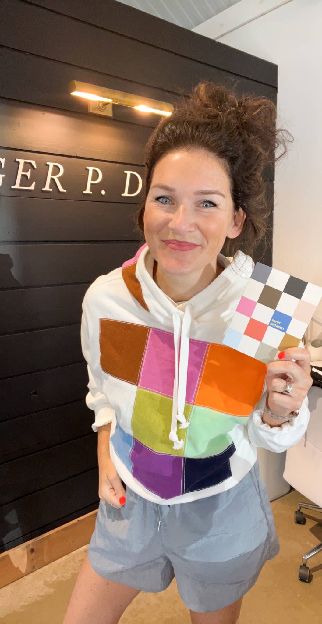 An array of punchy colors in a checkerboard pattern to wish a special someone Happy Birthday! With Gold Foil. Full - color 4.25" x 5.5" folded cards. Blank interior. Antique gold shimmer envelope included.