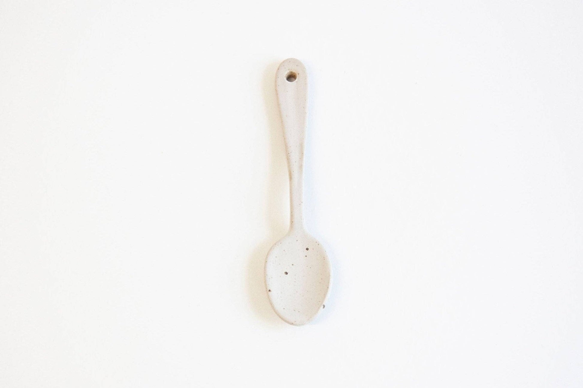 This matte white coffee spoon, adorned with a subtle speckle, offers a perfect blend of simplicity and charm. Its clean, minimalist aesthetic makes it a beautiful and functional addition to any kitchen.