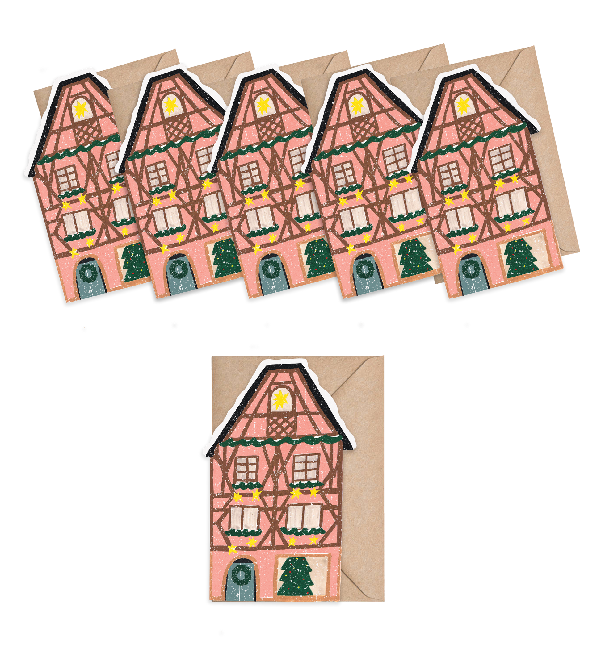 Pink Cottage mini cards! This petite version of our Pink Cottage card is perfect for tucking into gifts or adding a sweet handwritten note to your holiday table. Each box has 6 mini folded cards and matching kraft envelopes.