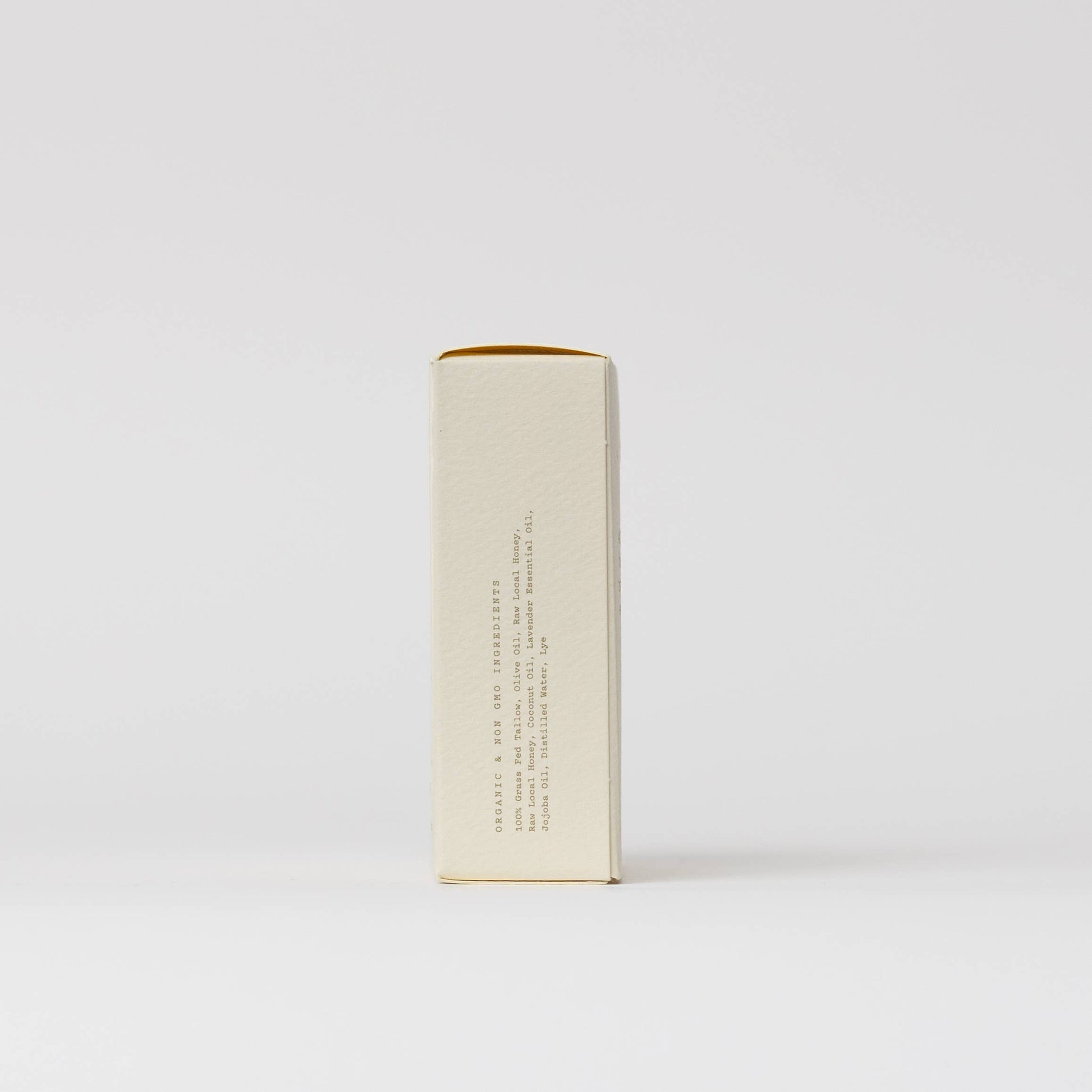 100% Grass-Fed & Finished Tallow (Hudson Valley, NY), Olive Oil, Raw Local Honey, Coconut Oil, Lavender Essential Oil, Jojoba Oil, Distilled Water, Lye.