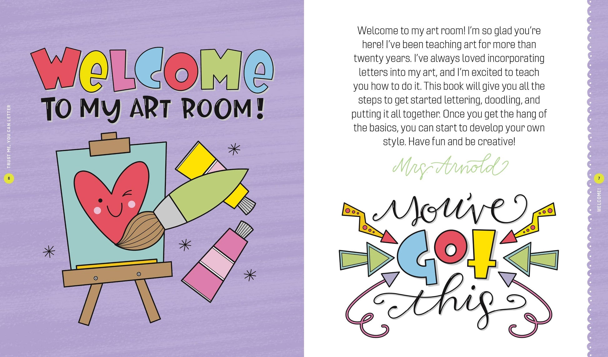In this newest book, Mrs. Arnold will teach readers how to draw 18 different alphabets! The book is conveniently organized into three main lettering styles: classic art deco letters, fancy cursive letters, and fun bubble letters. Each alphabet has step-by-step lessons and room to practice drawing right in the book.