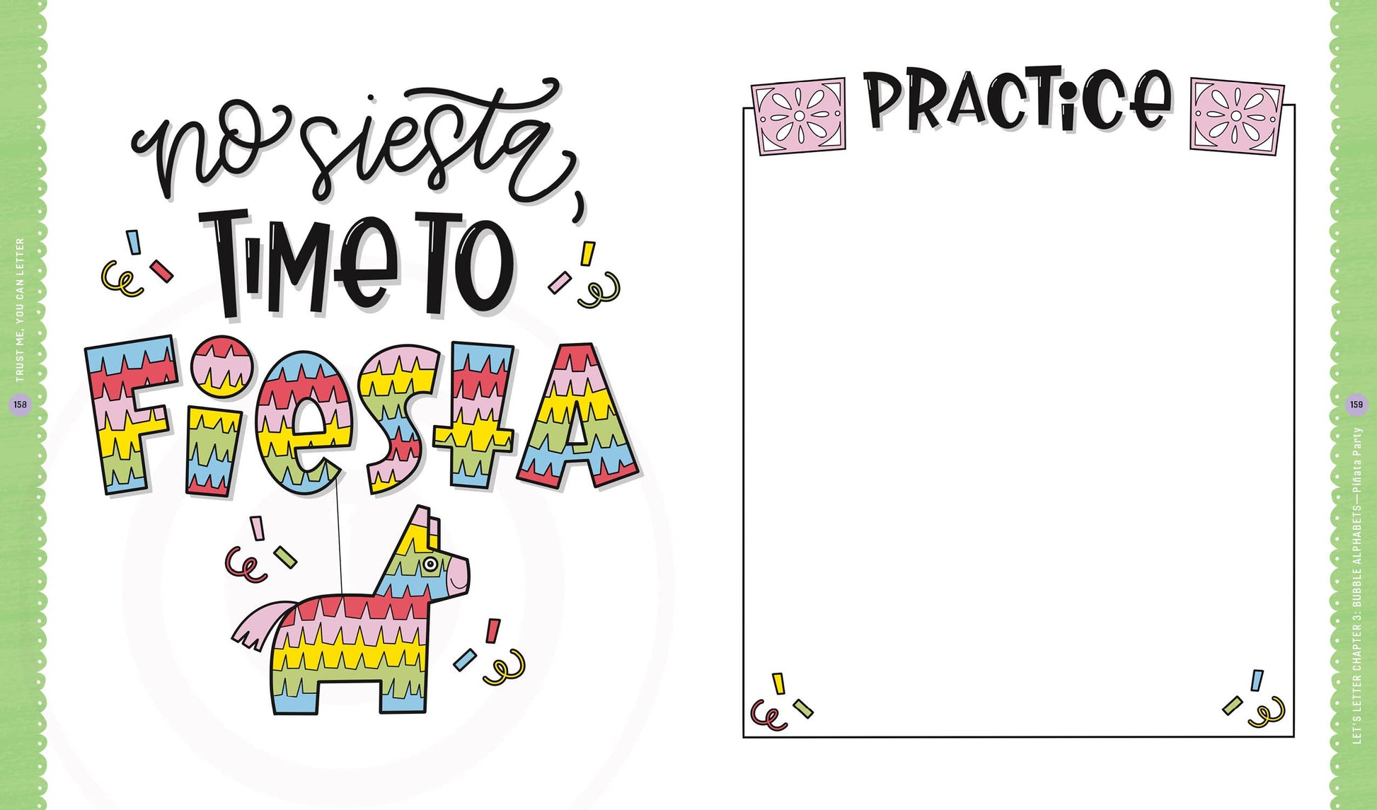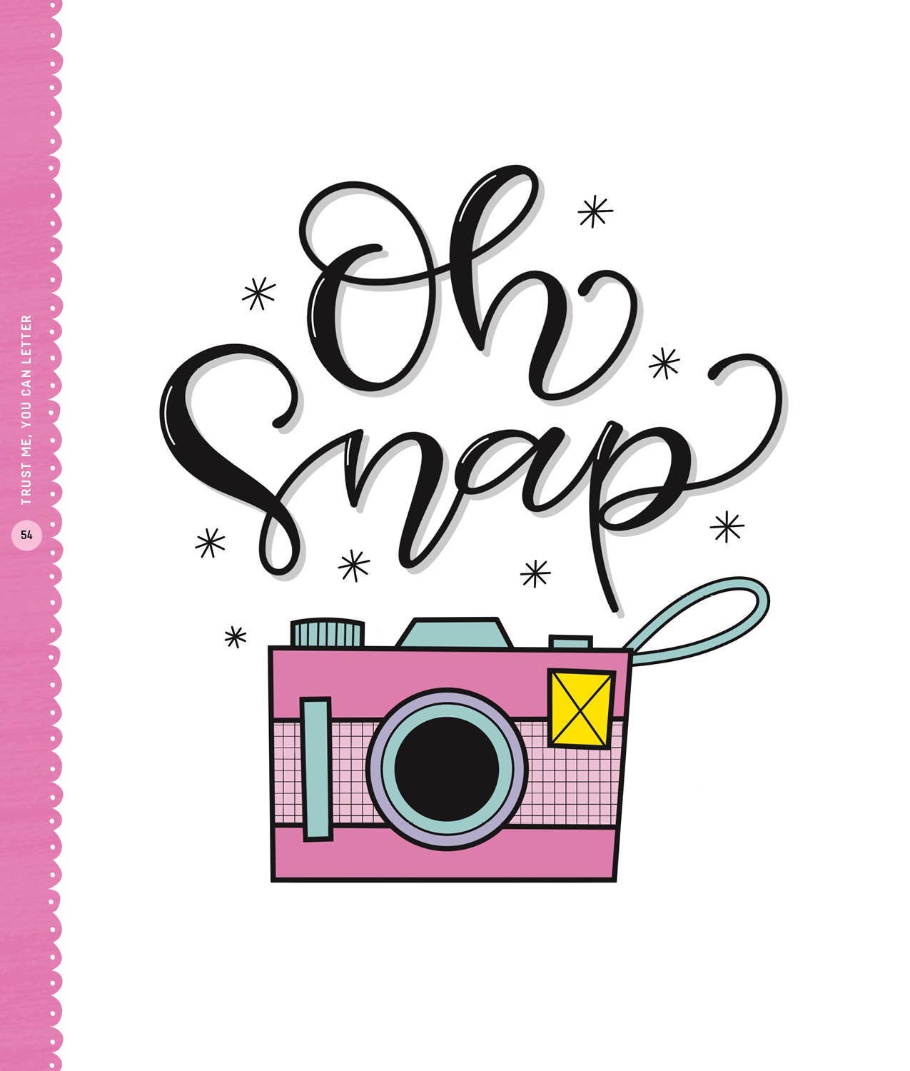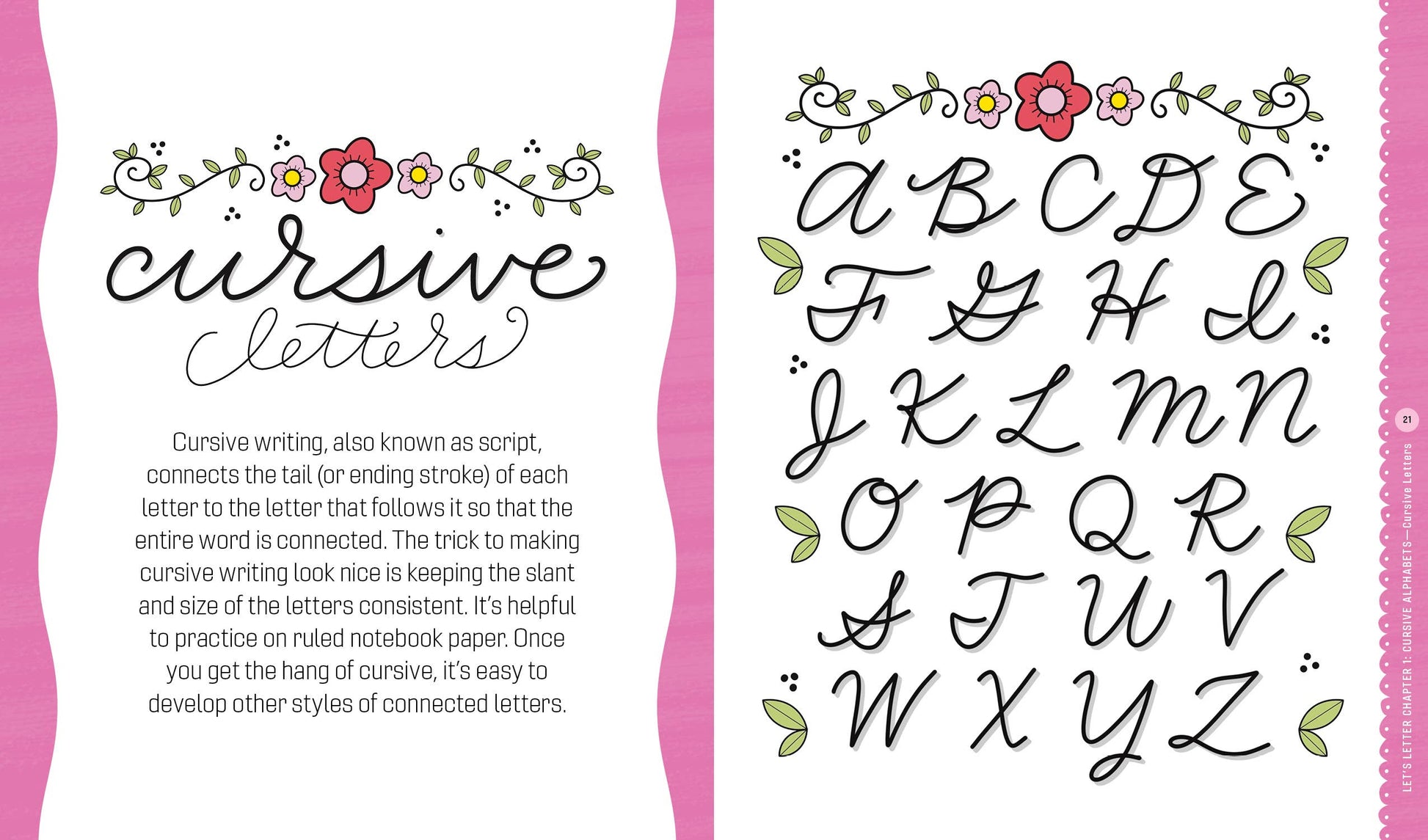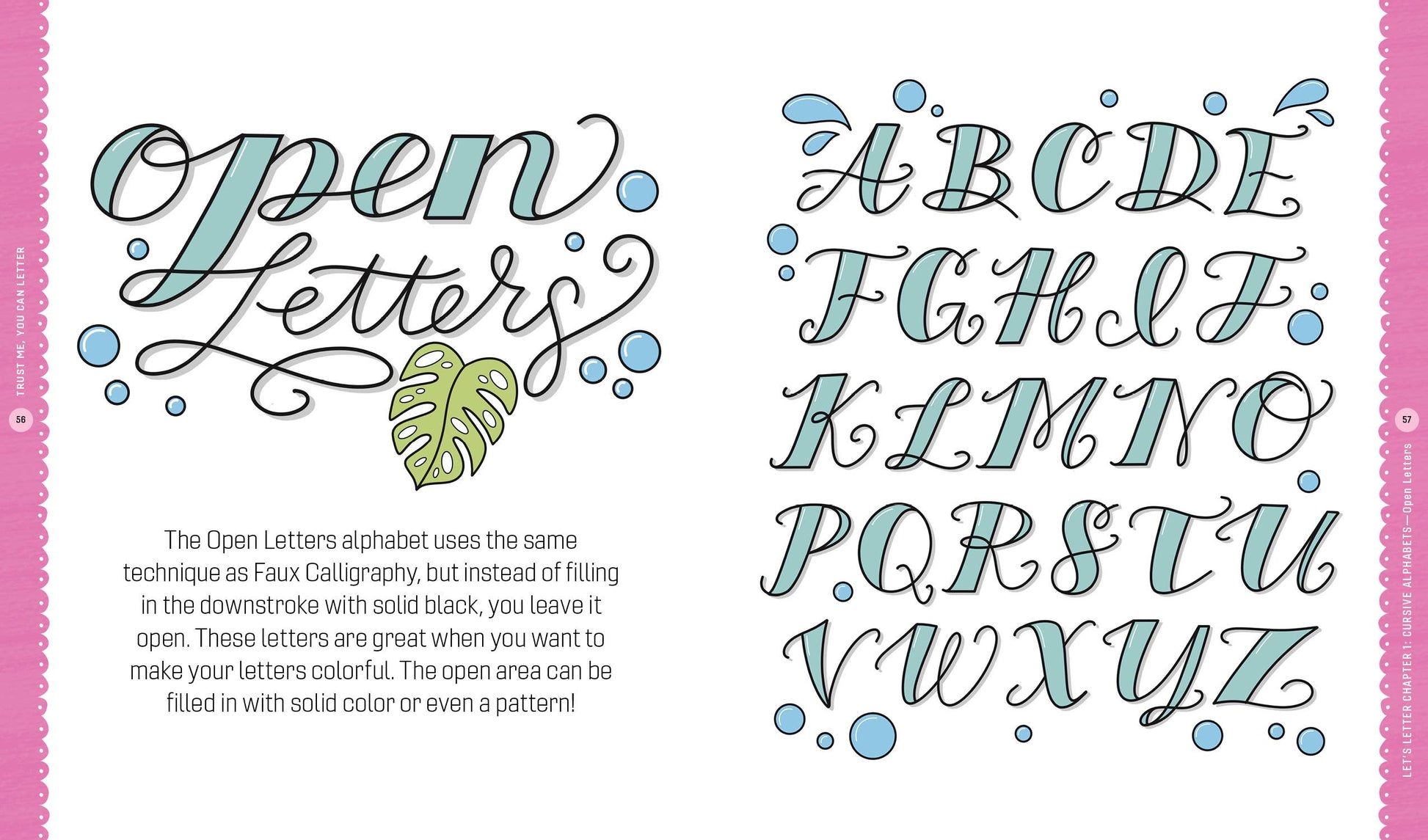 - Lettering lessons for 18 different alphabet styles, including art deco, cursive, and bubble styles
